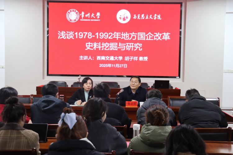 11月27日下午,西南交通大学马克思主义学院胡子祥教授应邀在文彰楼四楼秋白讲堂为学院师生作题为“浅谈1978—1992年地方国企改革史料挖掘与研究”专题讲座。讲座由院长刘晓华主持。