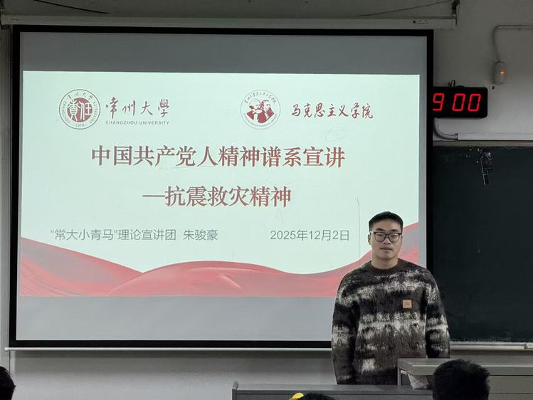12月2日,“常大小青马”理论宣讲团在常州大学科教城校区W2204开展主题宣讲活动,2025级研究生朱骏豪担任本次宣讲人,海外教育学院部分2025级本科新生参加。