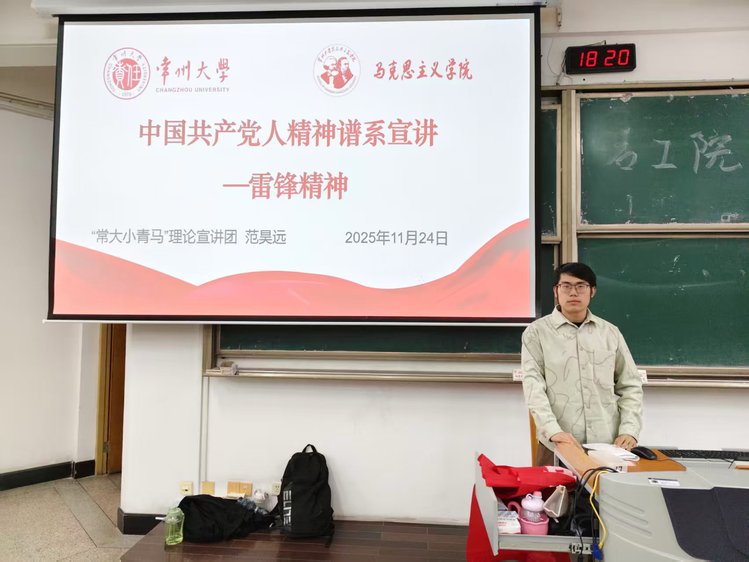 11月24日,“常大小青马”理论宣讲团在常州大学科教城校区W17开展主题宣讲活动,2025级研究生范昊远担任本次宣讲人,石油化工学院部分2025级本科新生参加。