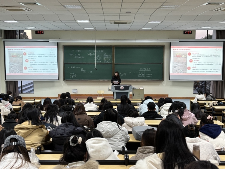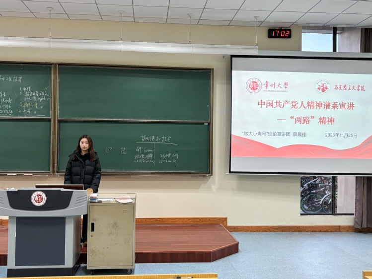11月25日,“常大小青马”理论宣讲团在常州大学西太湖校区立德楼一阶教室开展主题宣讲活动,2025级研究生薛晨佳担任本次宣讲人,美术与设计学院部分2025级本科新生参加。