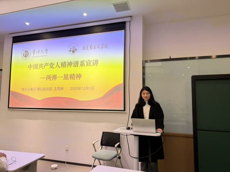 王雨婷以“赓续‘两弹一星’精神,筑牢强国兴邦根基”为题,深入解读了“两弹一星”精神的形成背景、基本内涵和发展历程,系统阐释了“热爱祖国、无私奉献,自力更生、艰苦奋斗,大力协同、勇于登攀”的“两弹一星”精神。她在解读中进一步强调,“两弹一星”精神是爱国主义、集体主义、社会主义精神和科学精神的集中体现,是中华民族的宝贵精神财富,也是社会主义文明的重要组成部分。