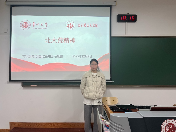 12月9日,“常大小青马”理论宣讲团在常州大学西太湖校区立德楼115教室开展主题宣讲活动,2025级研究生毛慧雯担任本次宣讲人,史良法学院部分2025级本科新生参加。