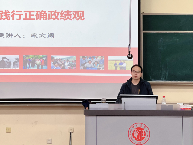 4月2日晚,马克思主义学院戚文闯博士以《树立和践行正确政绩观》为题,围绕习近平总书记重要讲话精神,系统阐释政绩为谁而树、树什么样的政绩、靠什么树政绩的核心要义,深刻阐明为民造福是最大政绩。他希望学员们深刻把握立党为公、为民造福、科学决策、真抓实干的实践要求。