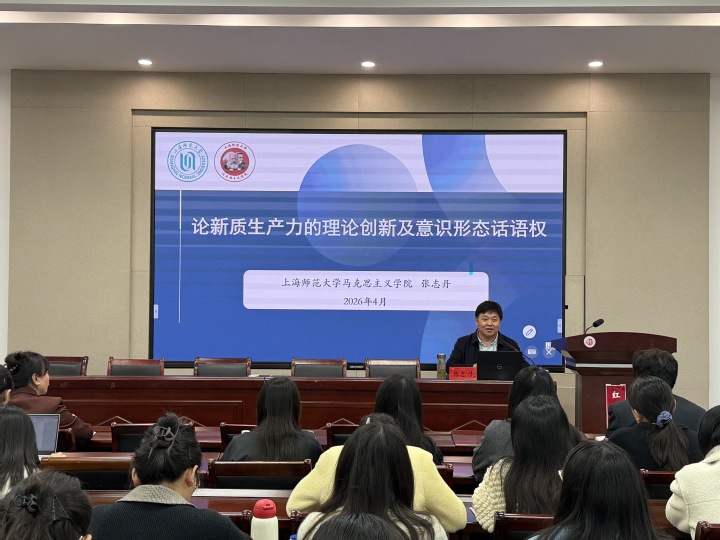 4月17日上午,上海师范大学张志丹教授应邀在太雷讲堂为学院师生作题为“论新质生产力的理论创新及意识形态话语权”专题讲座。学院名誉院长、红色文化研究院(中共党史党建研究院)院长朱成山教授,院长刘晓华教授及学院师生代表现场聆听座。讲座由刘晓华主持。